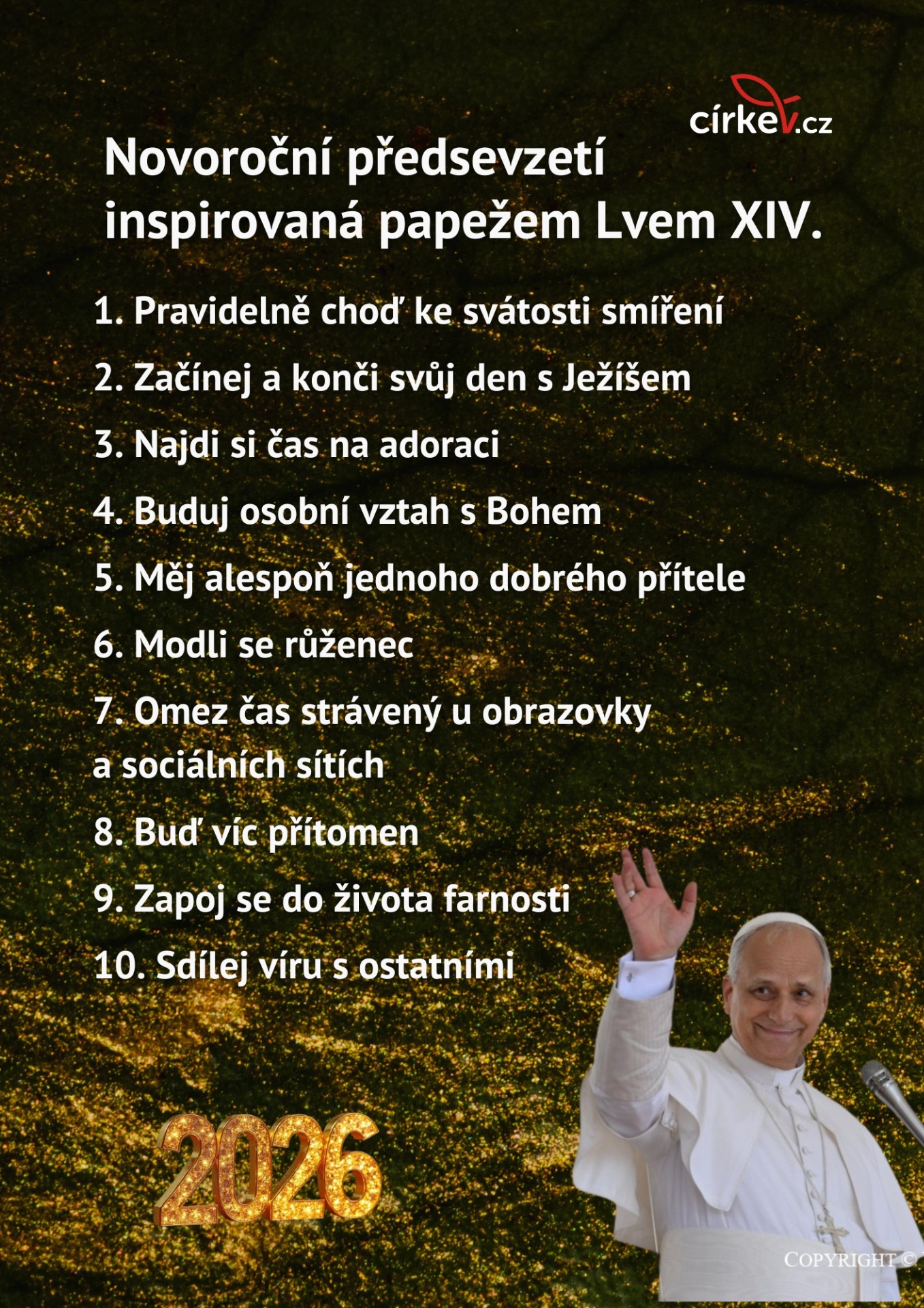 Na sklonku roku 2025 se papež Lev XIV. setkal s mládeží během National Catholic Youth Conference (NCYC) v Indianapolis a sdílel řadu povzbudivých myšlenek o životě s Kristem. Z tohoto setkání vyplynulo deset konkrétních návrhů na novoroční předsevzetí, která mohou mladí i všichni věřící promítnout do svého každodenního života v roce 2026.